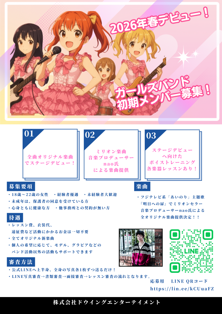 2026年春デビュー予定 新ガールズバンドの新メンバーを募集いたします。